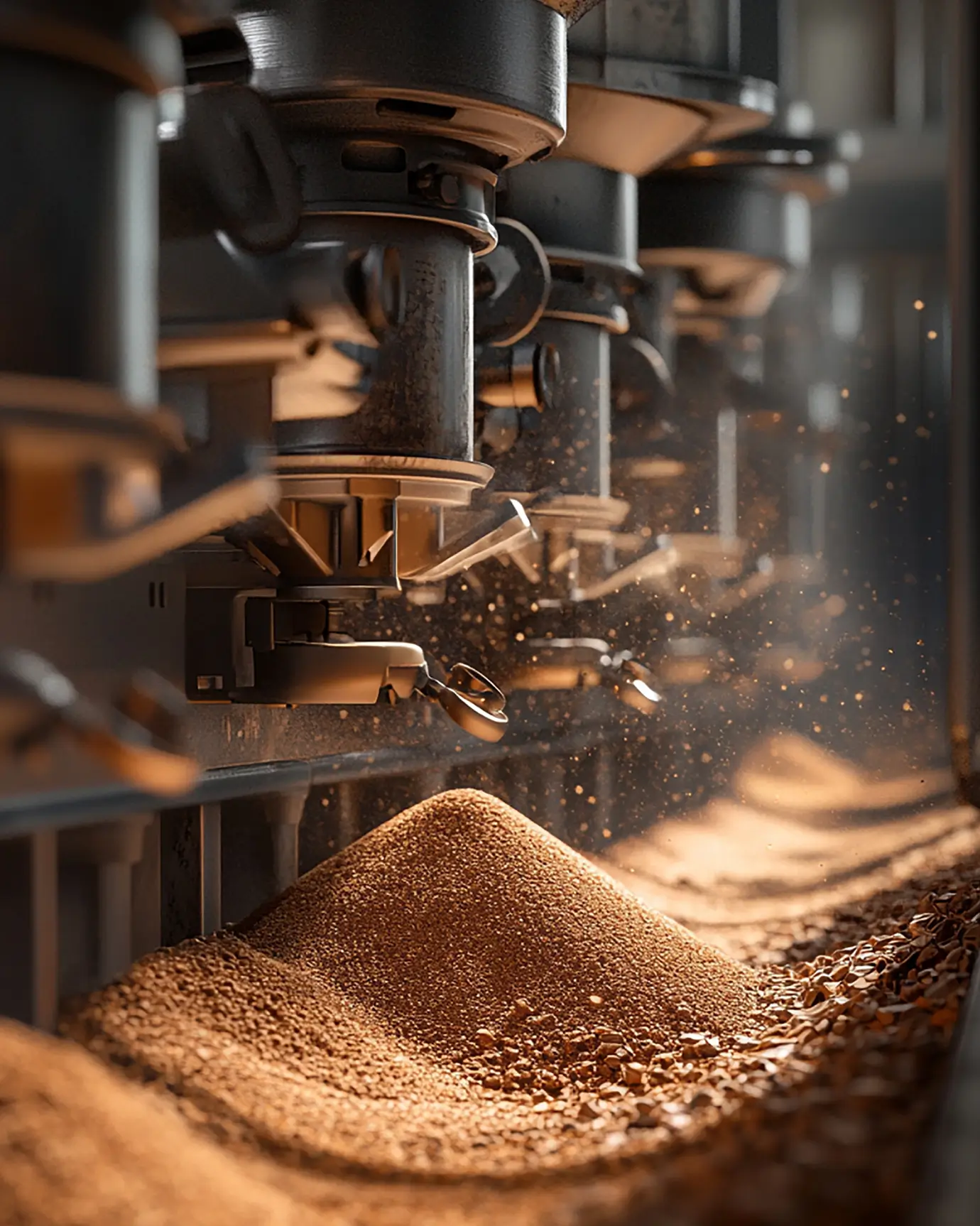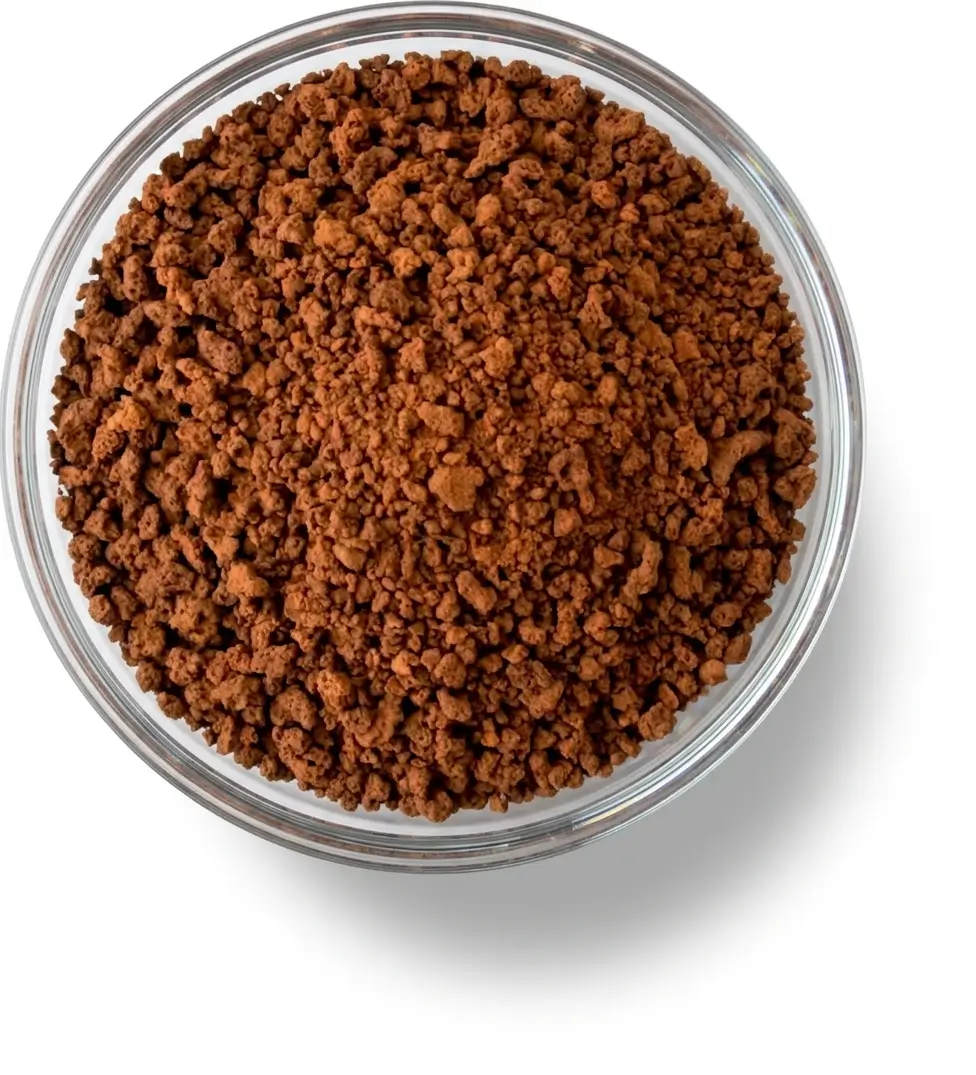 Premium granule format. Fine spray dried powder is converted into larger, porous granules through steam-assisted agglomeration. Faster dissolution, enhanced aroma, and superior brewing performance make this the preferred format for premium retail.